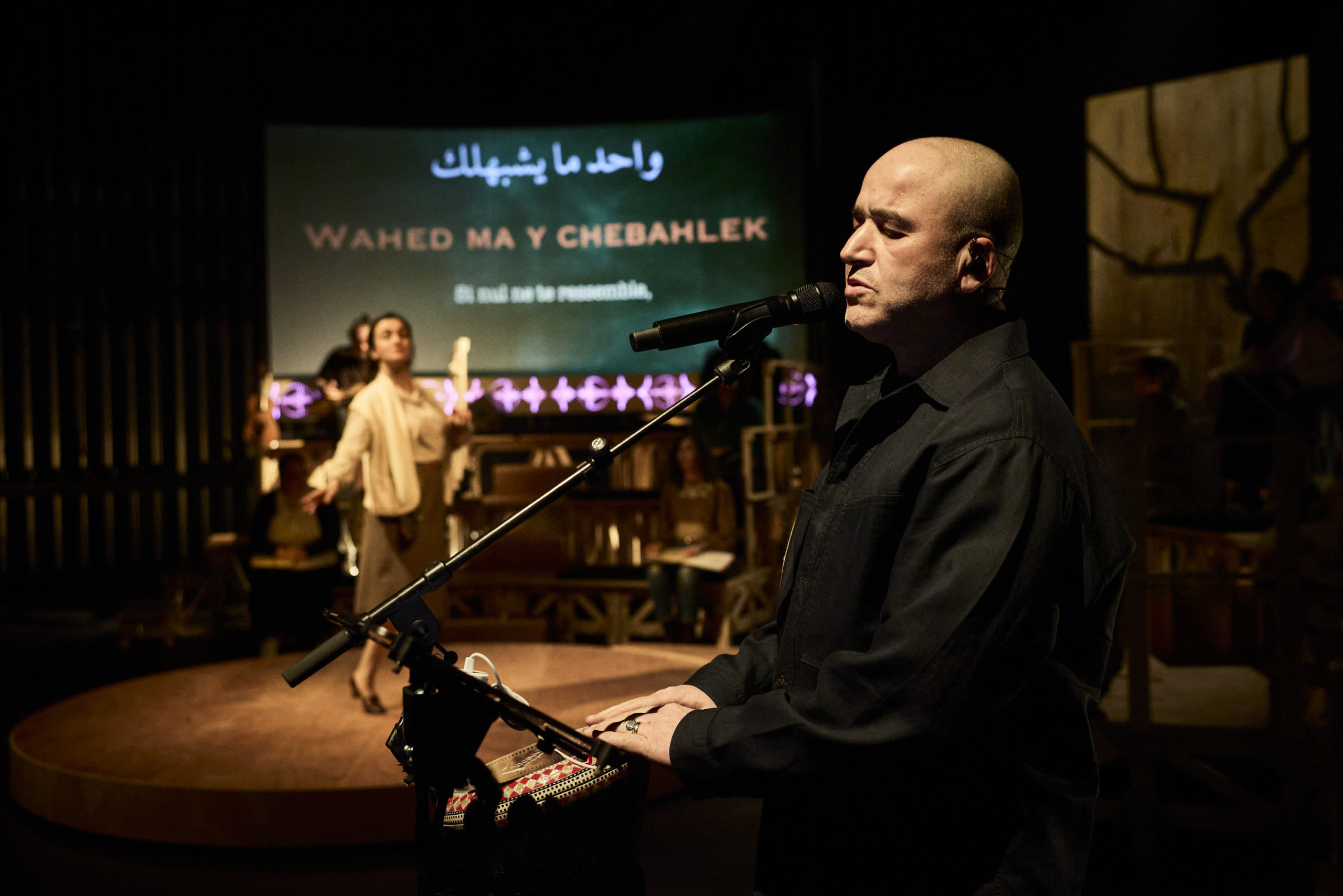 « Alif » en arabe, « Alef » en hébreu, « Alpha » en grec et « A » en latin, première lettre de l’alphabet, est le symbole de la connexion entre les cultures et les langues. Abdelwaheb a grandi dans une famille nombreuse. Entre un père passionné de géopolitique et militant pour l’indépendance de l’Algérie, et une mère avide d’histoires de famille et de mariage. Le jour de son entrée au collège, il découvre sa nouvelle professeure de langue arabe. Anne est une élégante libanaise chrétienne, qui a fui la guerre civile. Une personnalité à l’opposé de ses précédents enseignants chahutés. Il y avait Ibrahim, de la mosquée, à la longue barbe, ou Rachida, de l’amicale laïque des Algériens en Europe.. Avec Anne, le calme s’installe dans la classe. L’apprentissage de l’arabe dépasse le cadre religieux pour laisser place à l’arabe des poètes. Notamment à l’instruction en chansons et la découverte des plus grandes interprètes : Faïrouz, Ismahan, Oum Kalthoum. Dans Alif, son nouveau spectacle musical, Abdelwaheb Sefsaf témoigne de son apprentissage de la langue arabe comme vecteur d’émancipation, de valorisation de l’héritage culturel et d’intégration au sein de la société française.