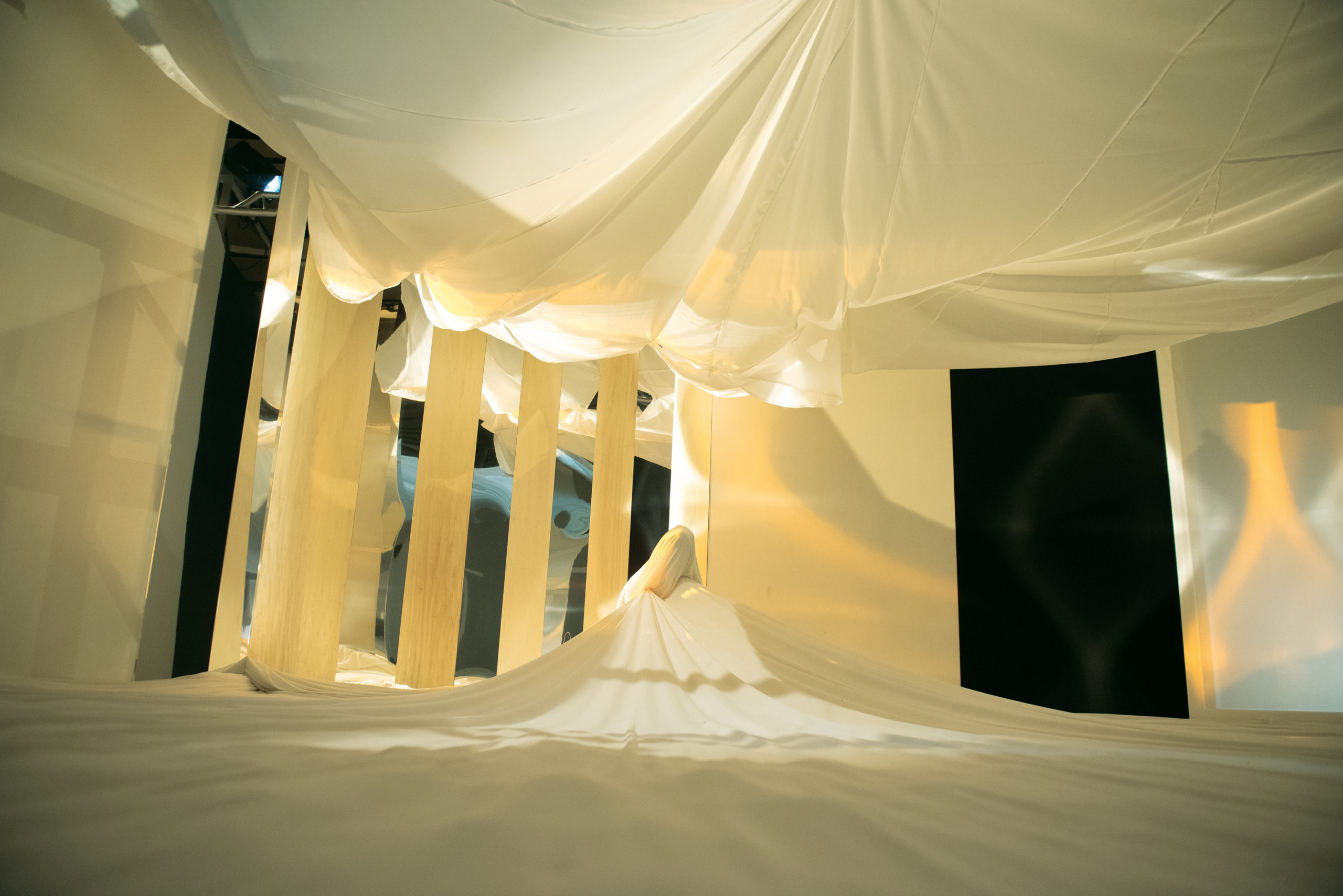 Le public est assis au sol durant toute la durée du spectacle.