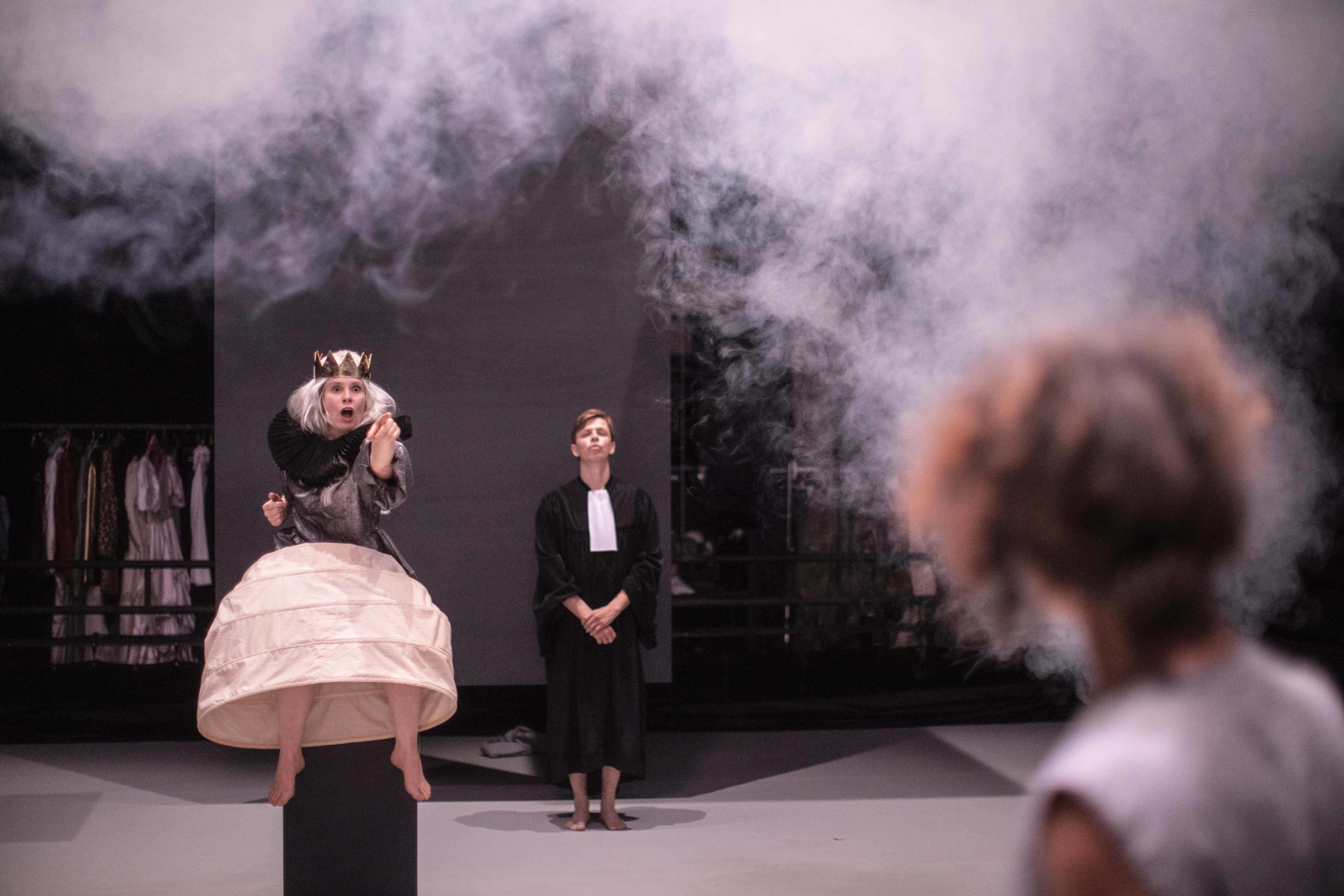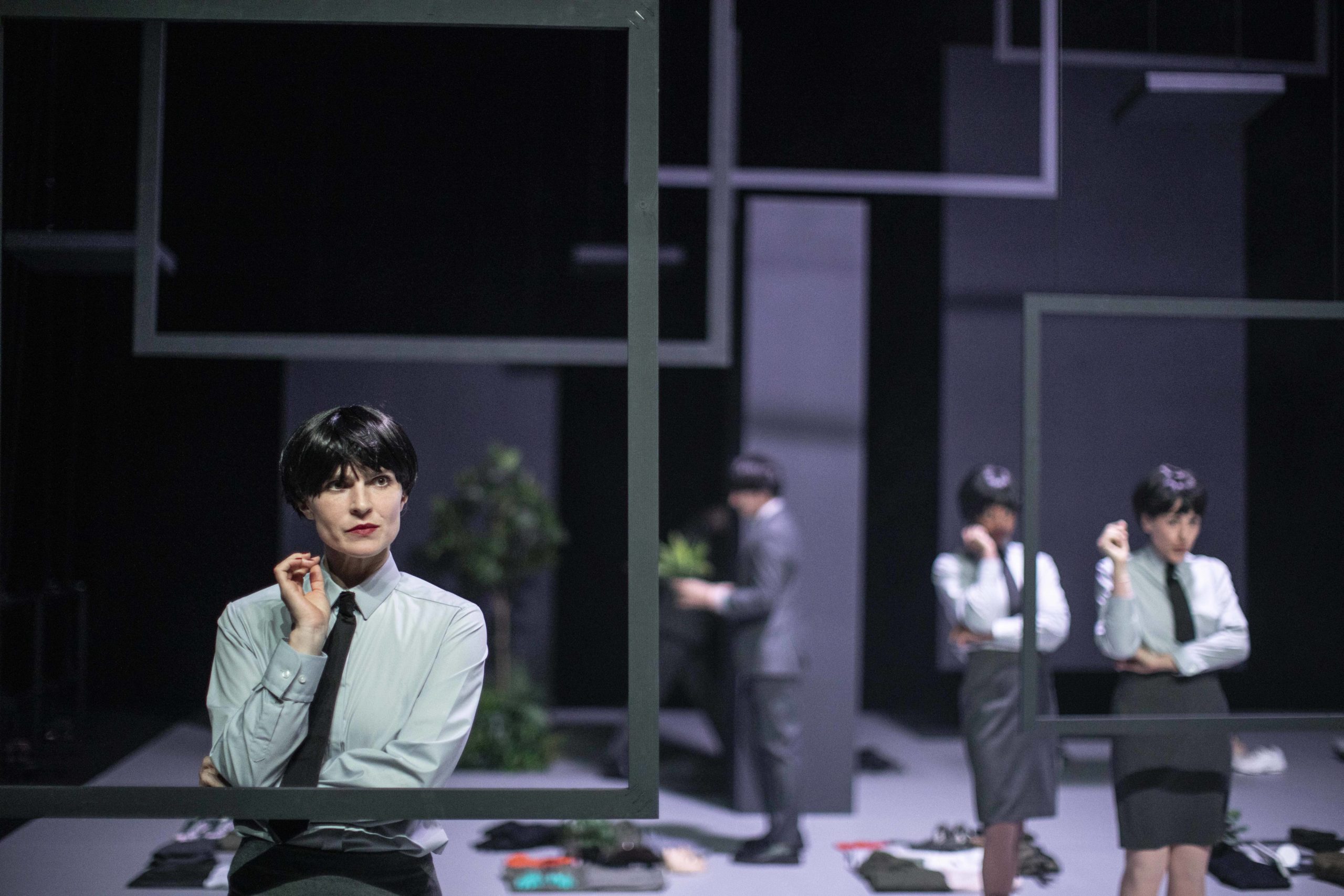 Sur un plateau quasiment nu, des figures anonymes déambulent. Ce sont les habitant·es de « l’âge des nouveautés », une ère dystopique régie par un ordre social implacable et des règles strictes. Une machine bien huilée, jusqu’à l’arrivée d’Alice K. Propulsée dans ce pays des merveilles glaçant, elle découvre un fonctionnement absurde, presque kafkaïen. Mais que peut un individu face à un tel système ?