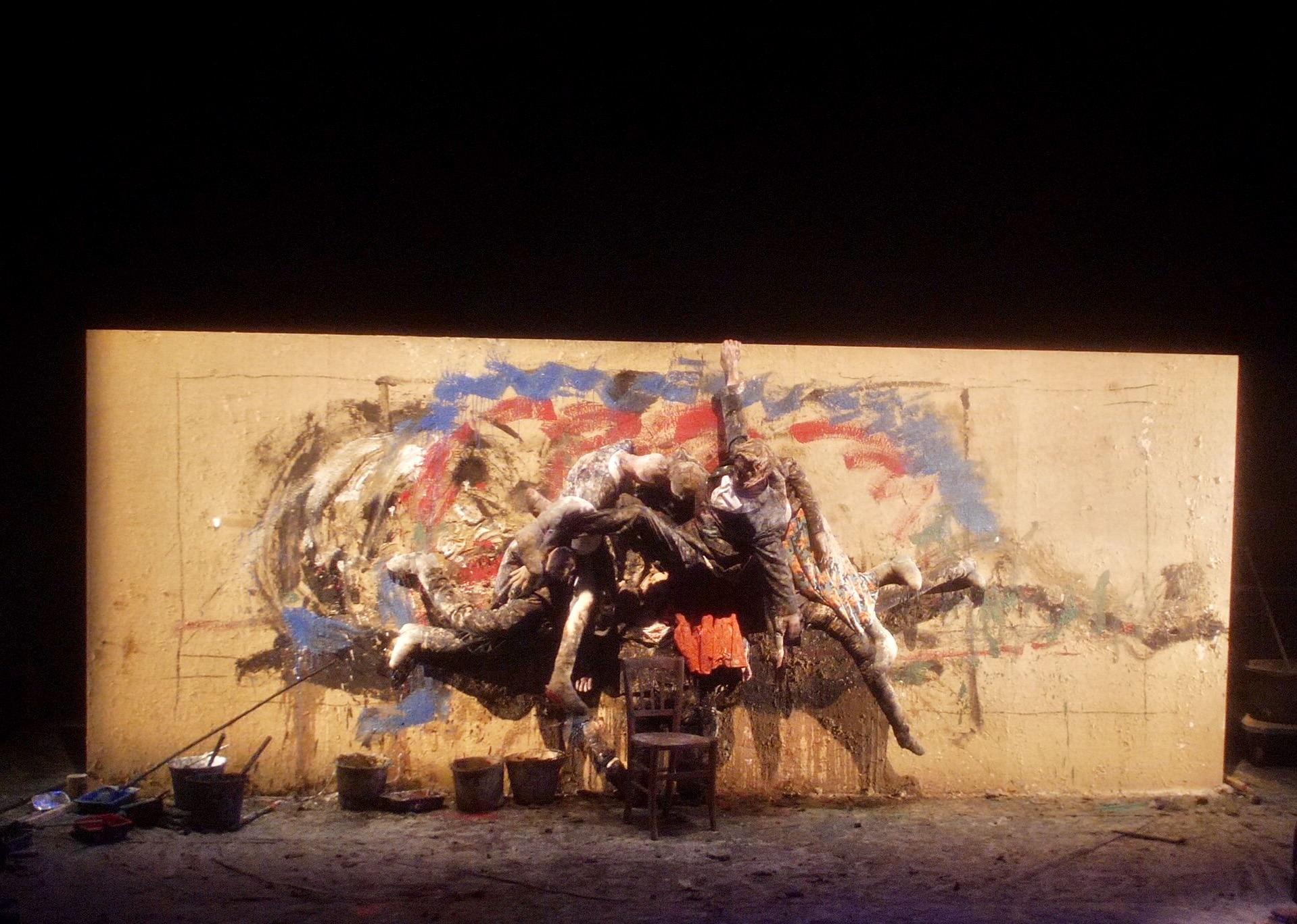 D’une toile achevée, vous ne percevez que les derniers coups de pinceau. Mais imaginez le combat qui l’a précédé : ce duel entre le peintre et sa création, son imagination et ses gestes impulsifs, ses élans et ses abandons. Et si le peintre quittait un instant sa toile pour se tourner vers nous, et que de vrais corps apparaissaient soudain à la surface de son œuvre ? Avec cette nouvelle création, Olivier de Sagazan propose une performance picturale et monumentale en direct, pour explorer le cœur même du geste créatif. Face à ce mur de toile qui lui résiste, chacun de ses mouvements est capté en temps réel par la régie son, lumière et vidéo, transformant ses gestes en matière sonore, visuelle et plastique. Le corps du peintre devient ainsi le générateur d’une musique qui l’amène vers la transe.